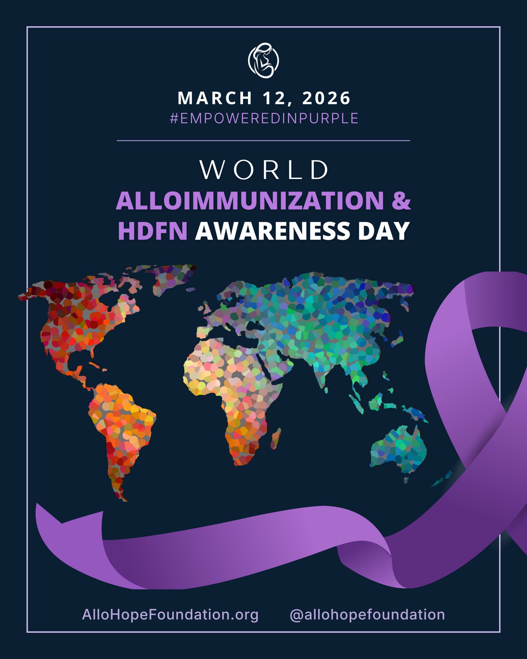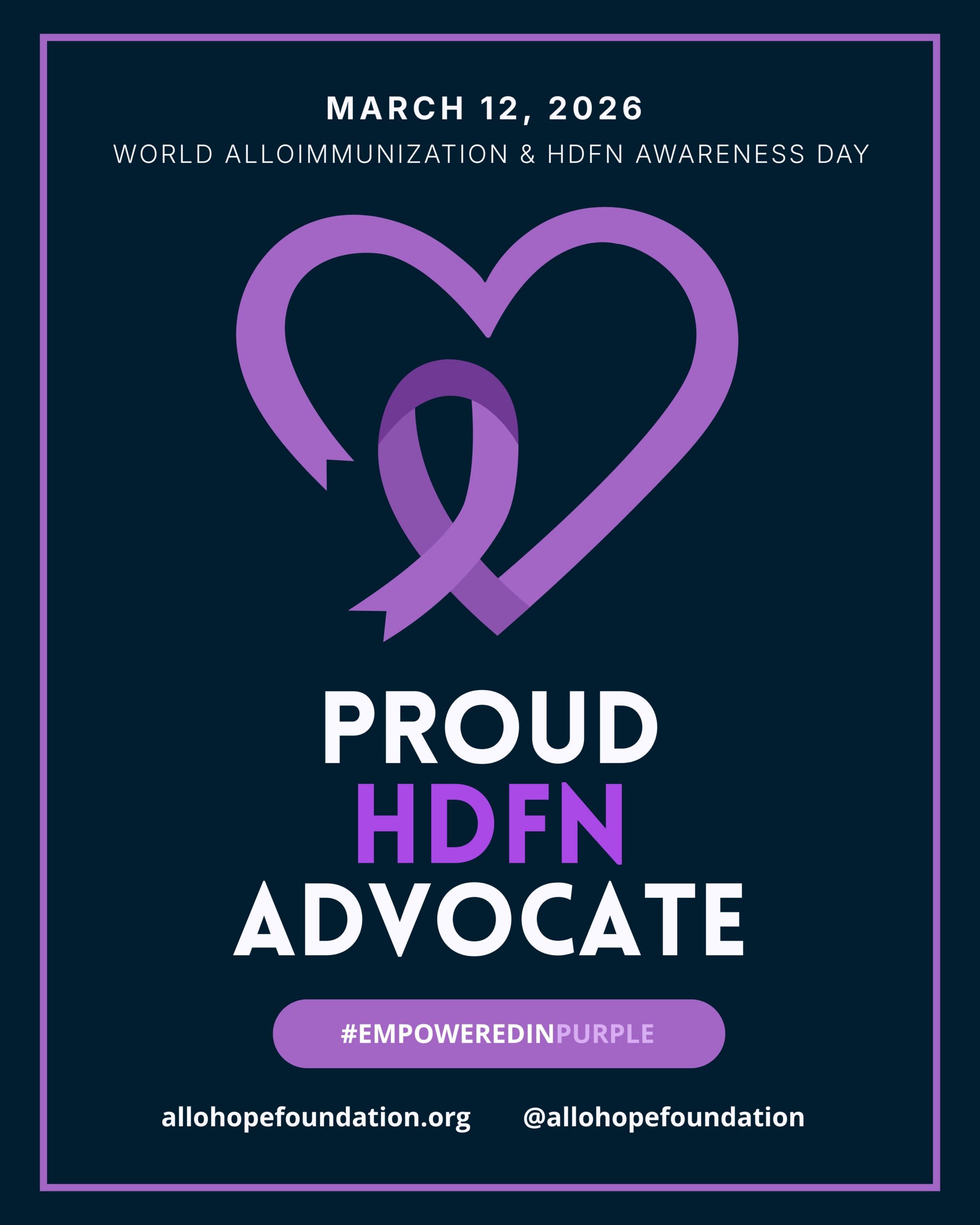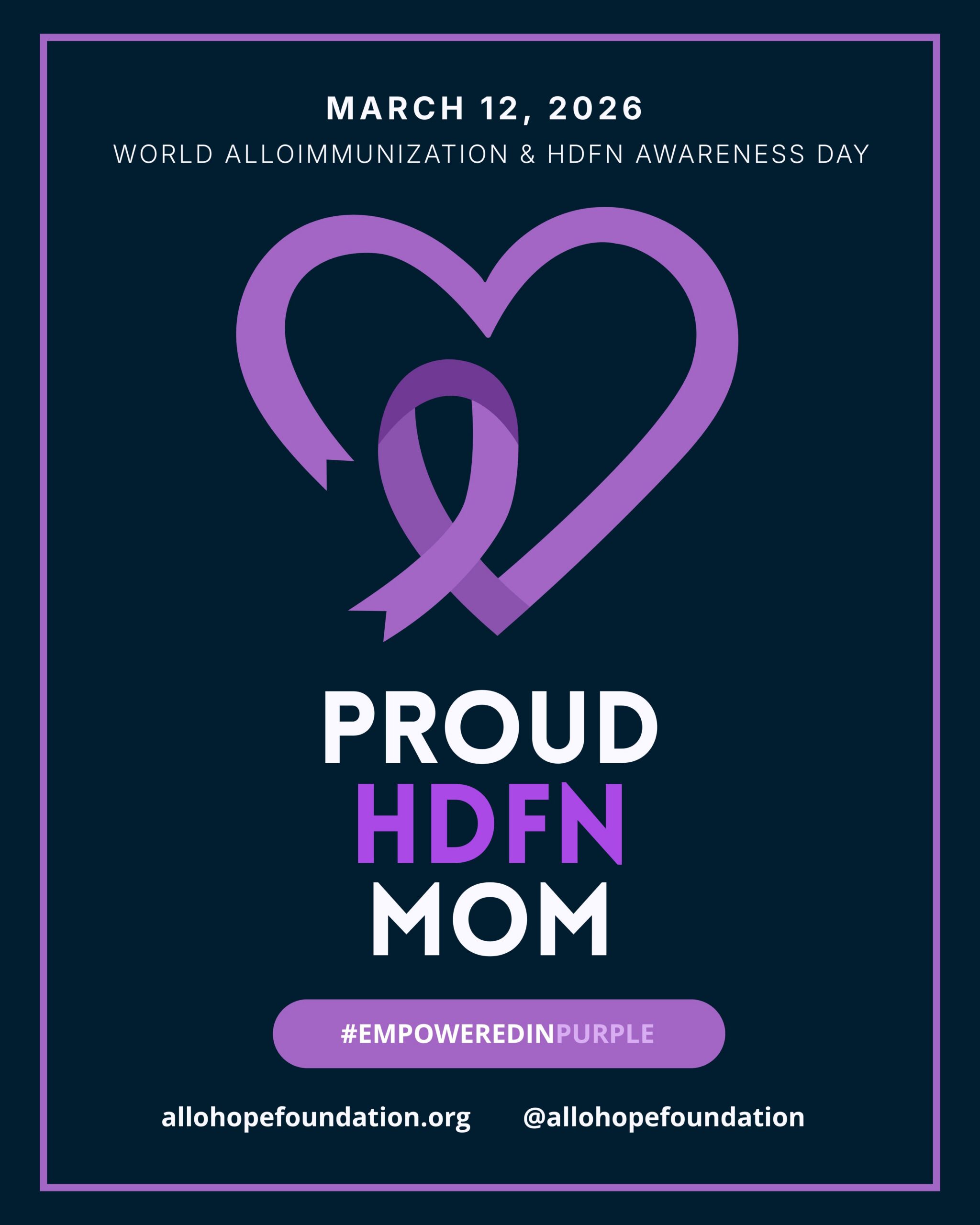 Join us in raising awareness for alloimmunization and HDFN on March 12 by sharing a graphic, wearing purple, and helping more families and providers learn about this often-overlooked condition.